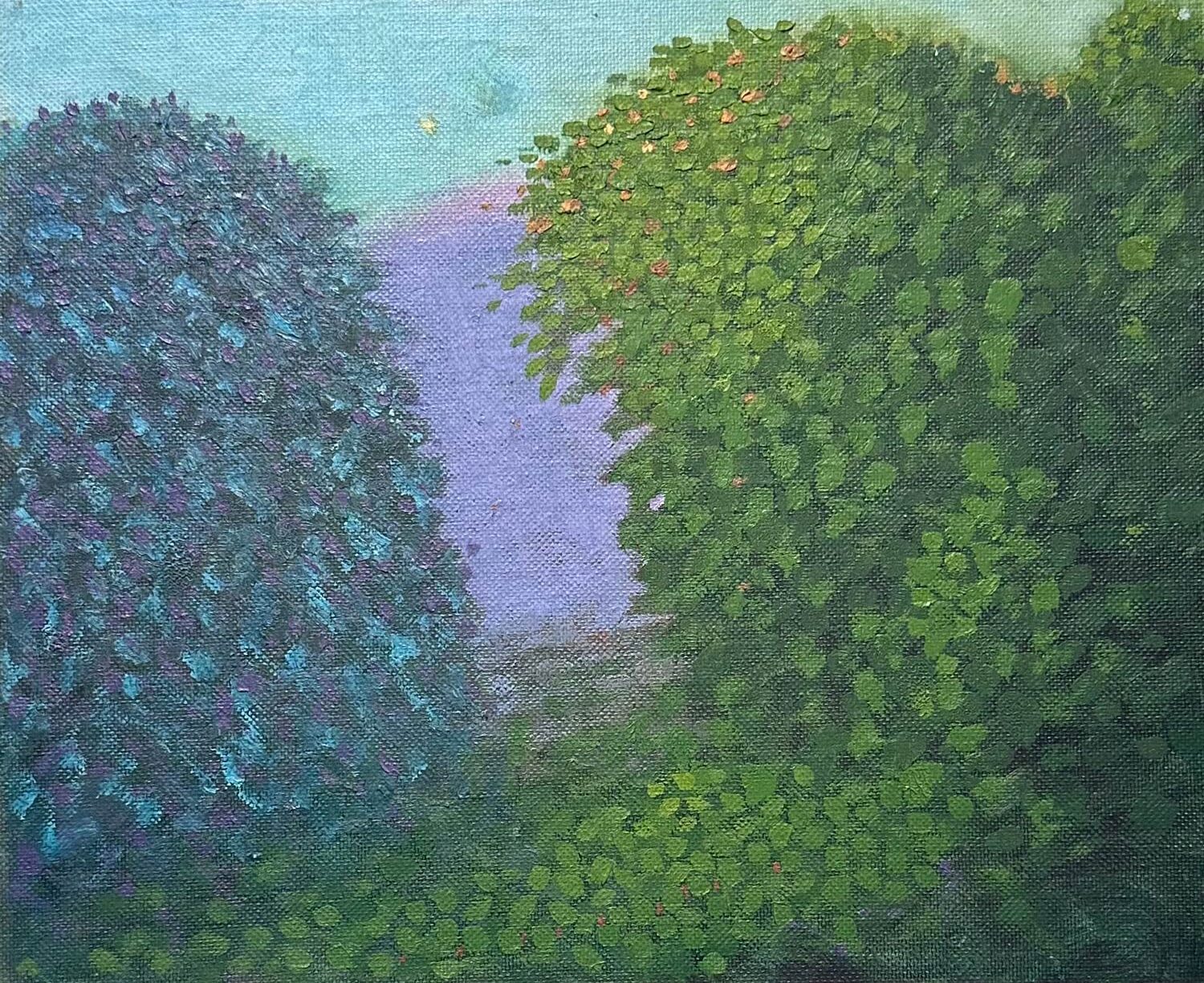 Over many years, I have gradually refined my approach to 2D design, aware that true greatness lies in simplicity. My aim is to create an underlying visual dynamic. The poetry of the subject and the poetry of the structure support each other. The real or observed world and the subconscious dream world both play their part to make a painting sing.