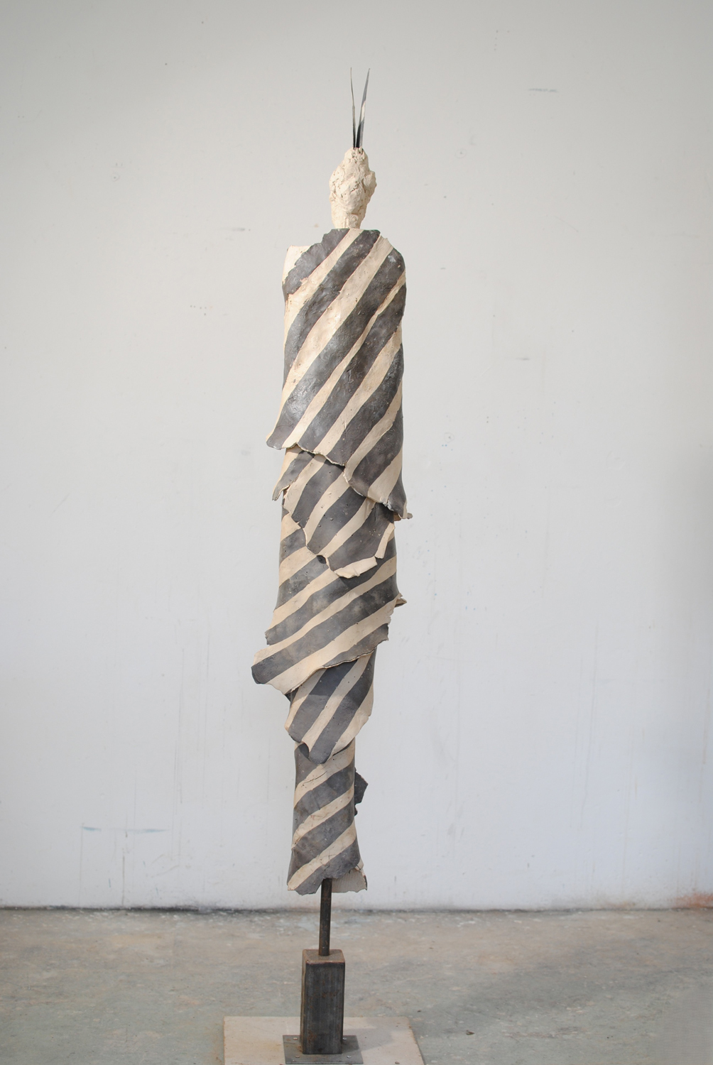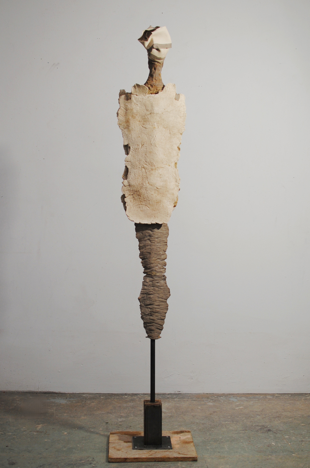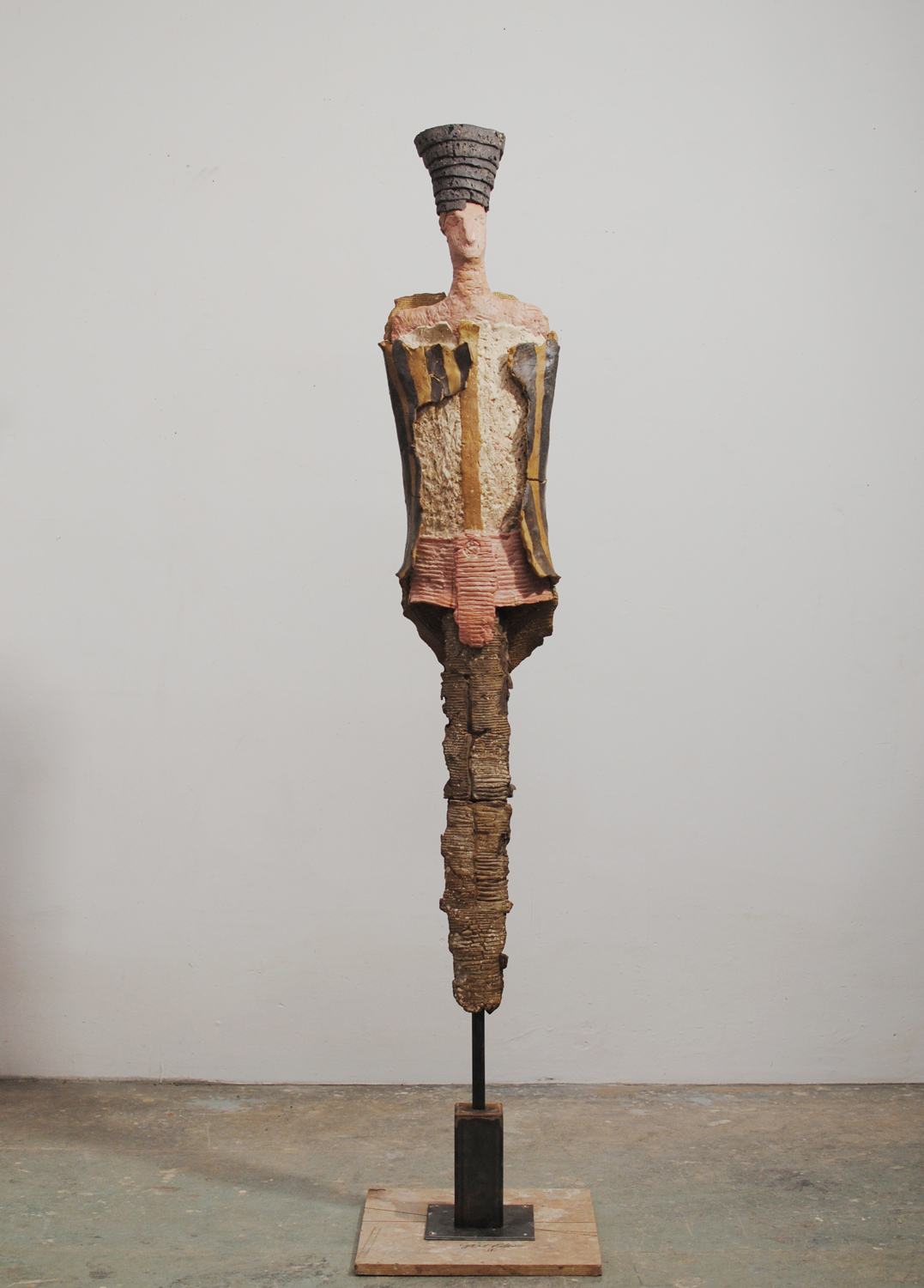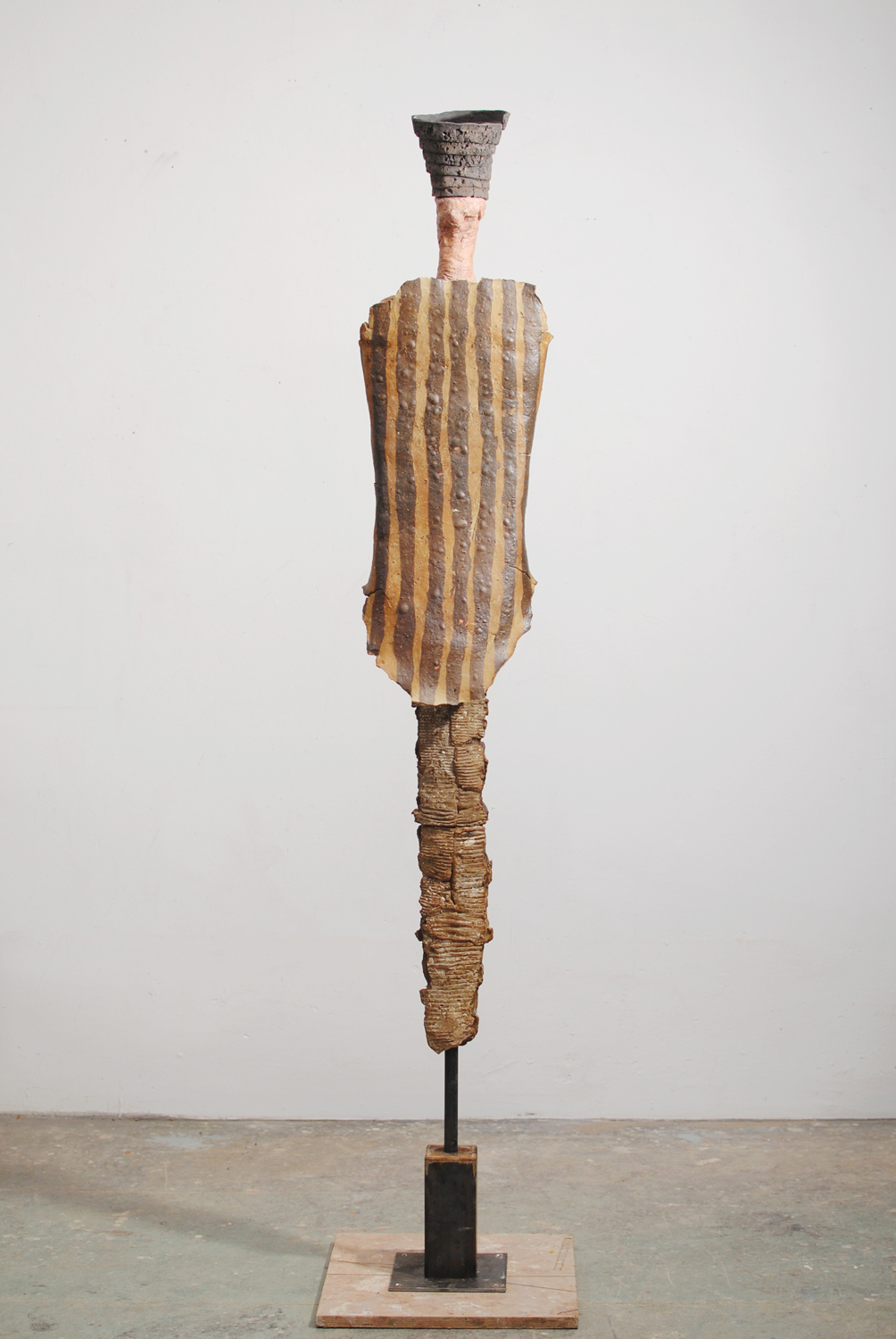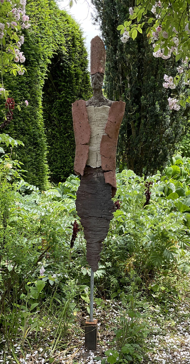 High-fired stoneware on steel armature. Frost-proof and suitable for outdoors.