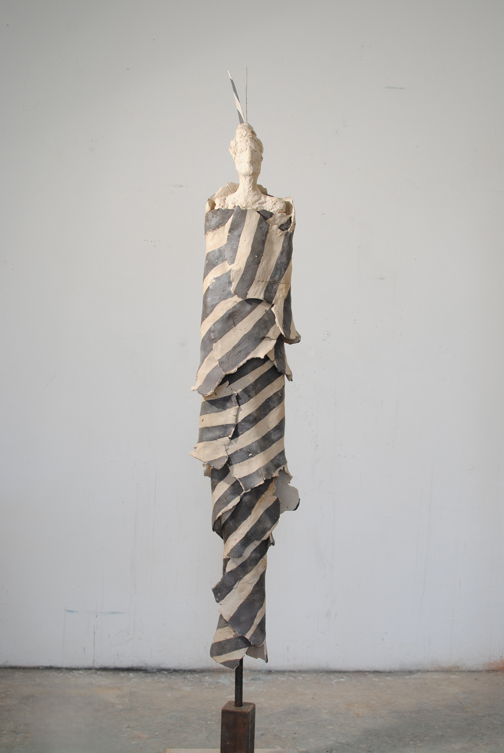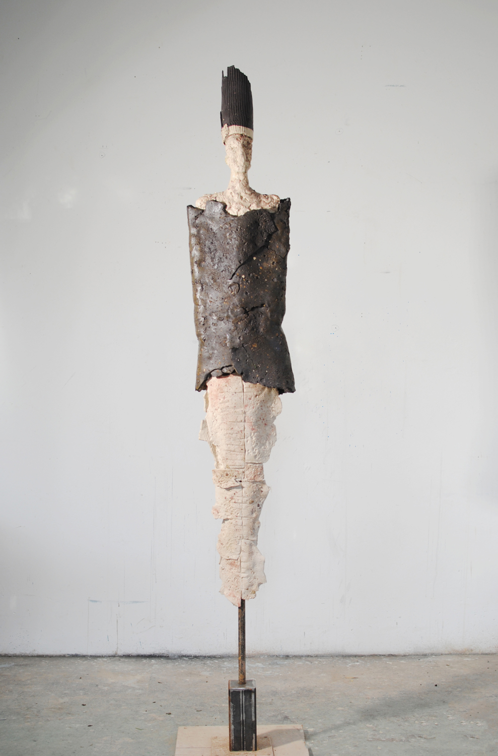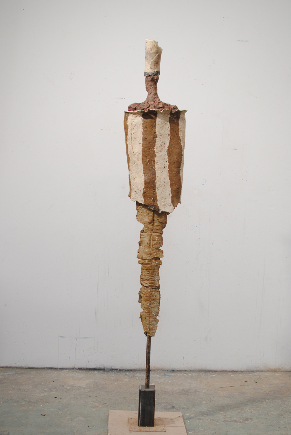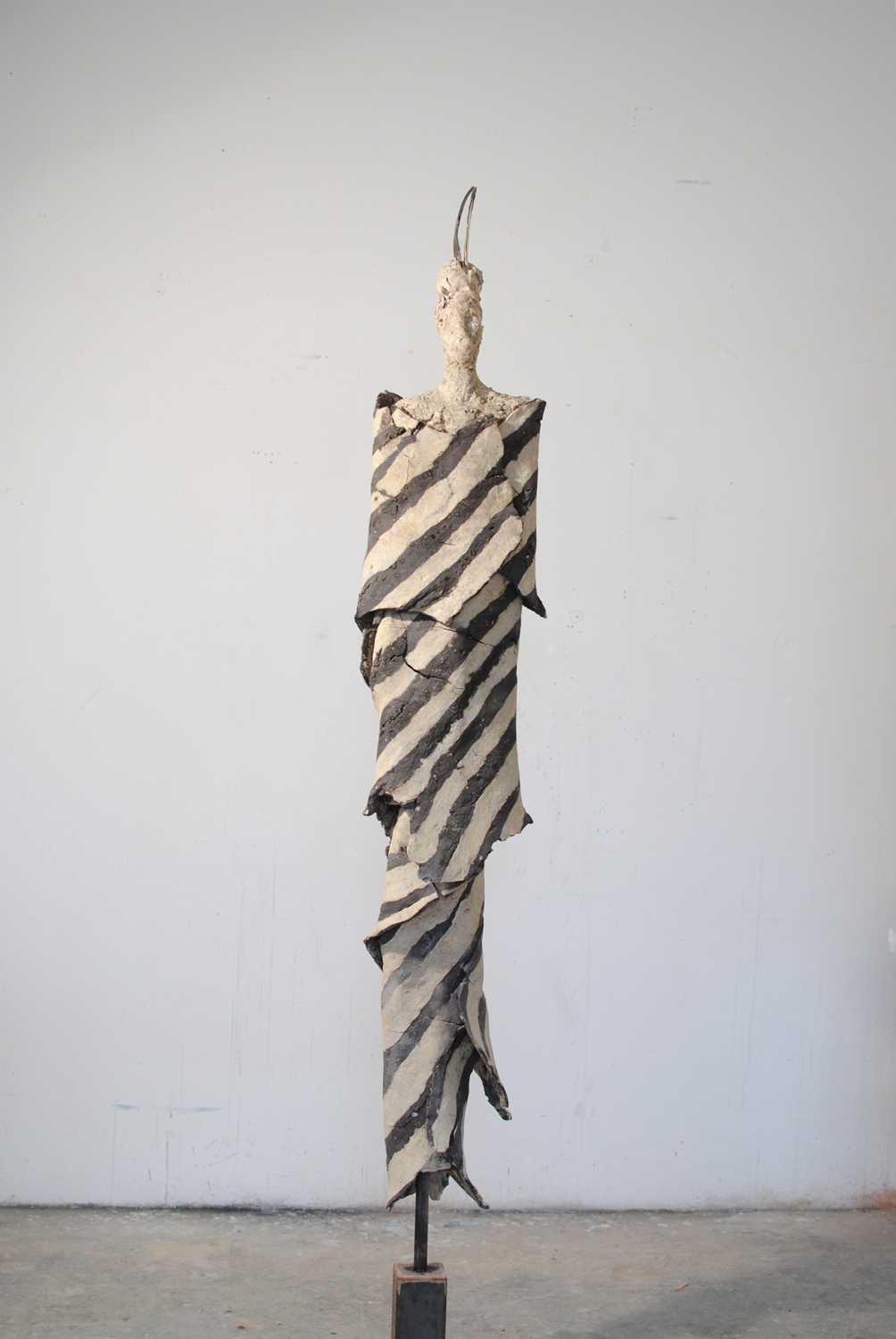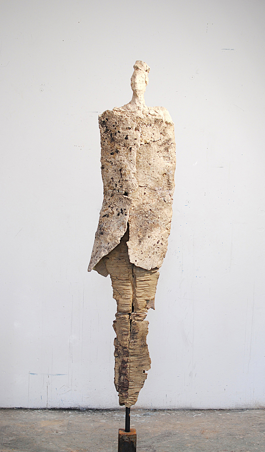 High-fired stoneware on steel armature. Frost-proof and suitable for outdoors.