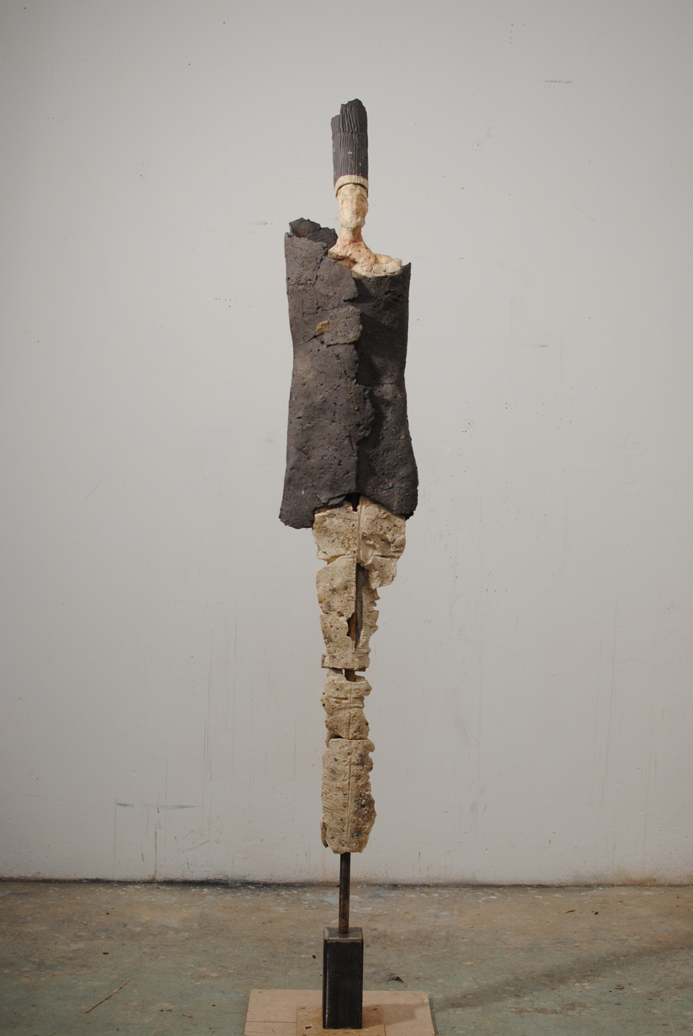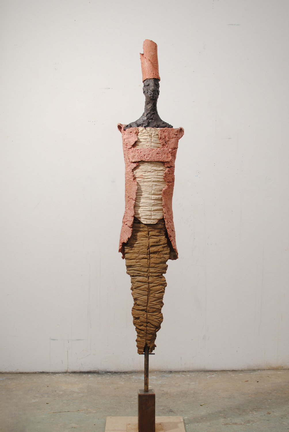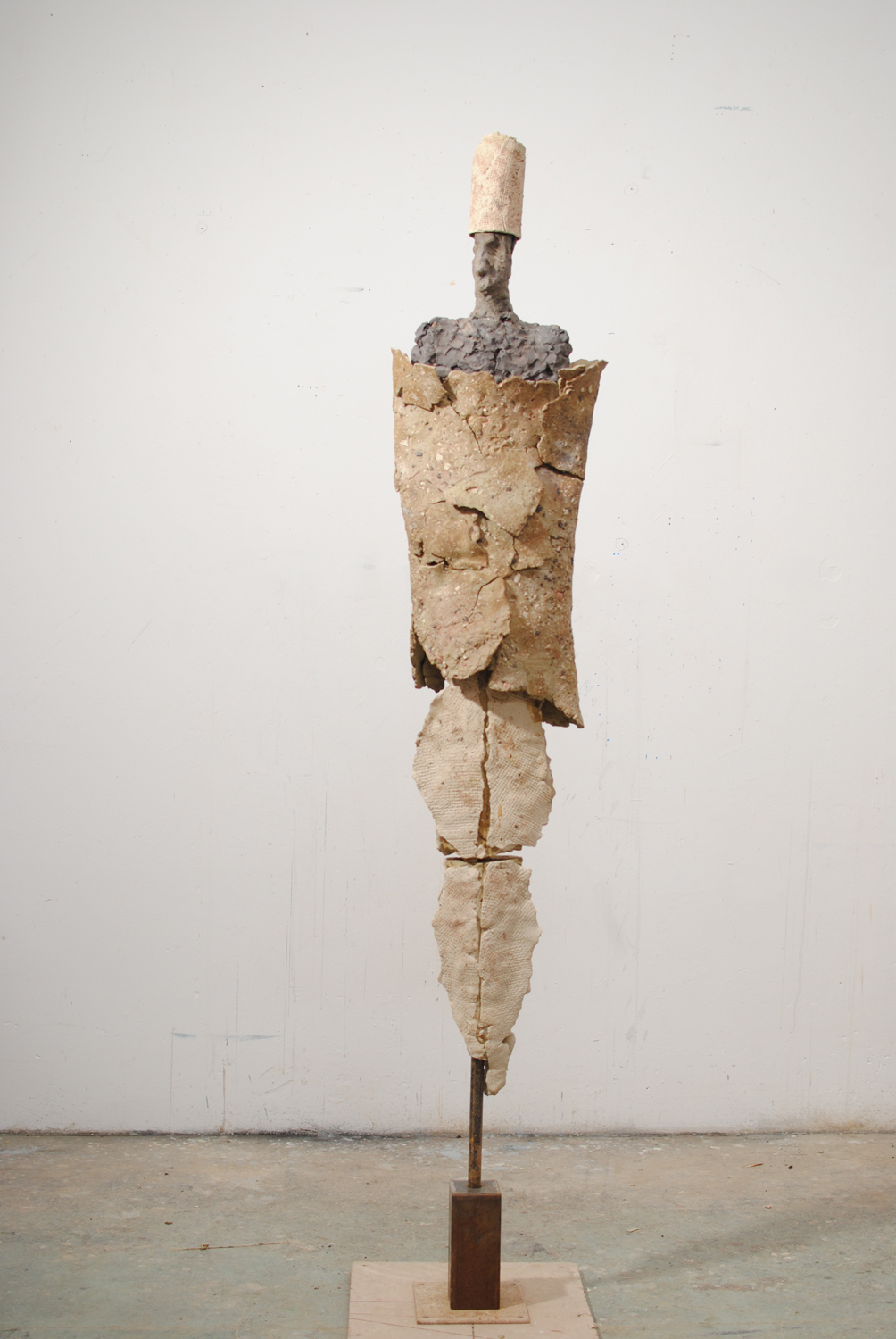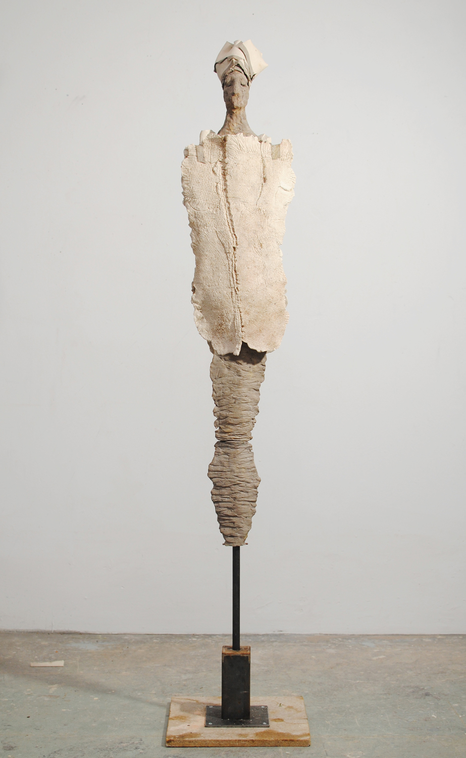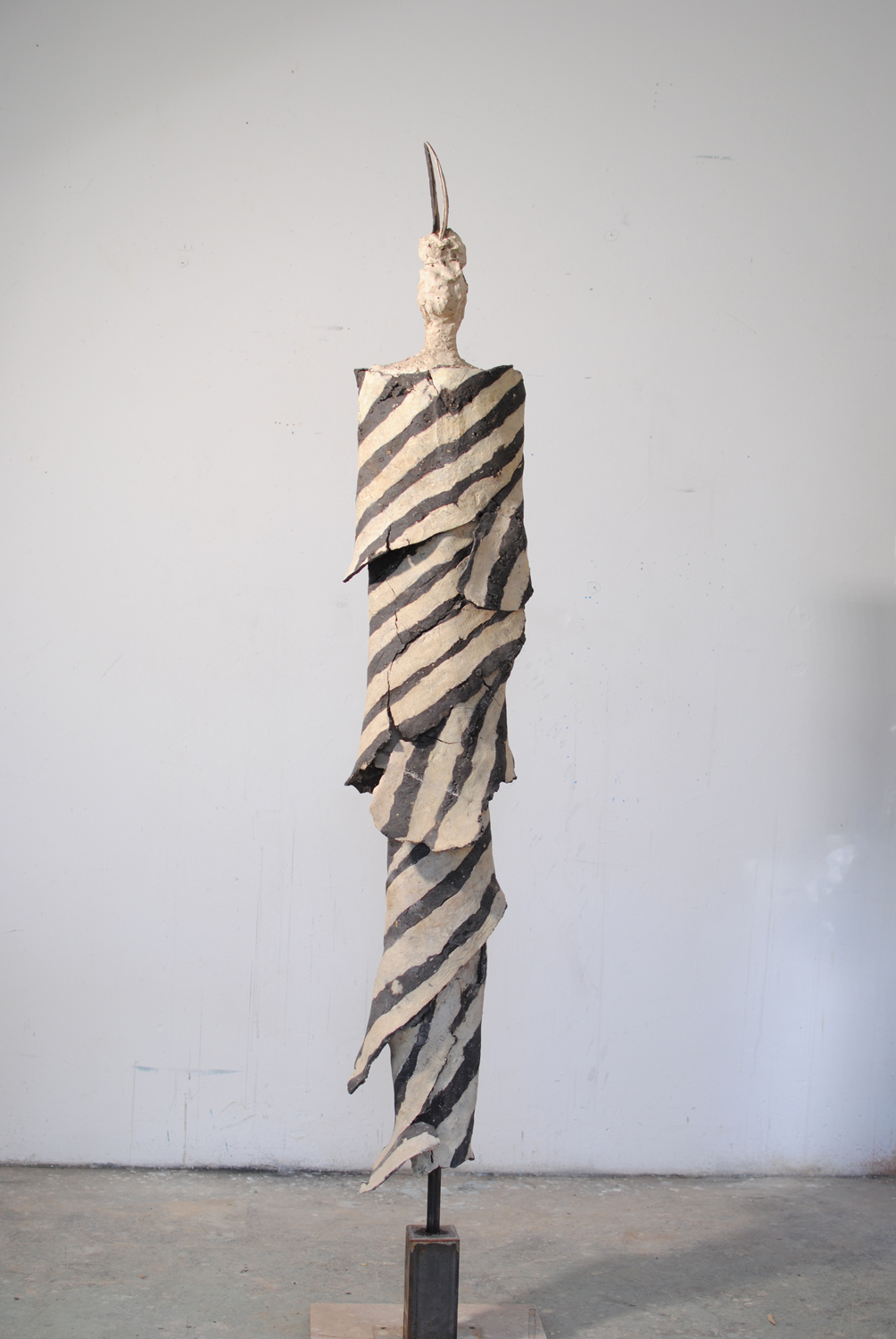 High-fired stoneware on steel armature. Frost-proof and suitable for outdoors.