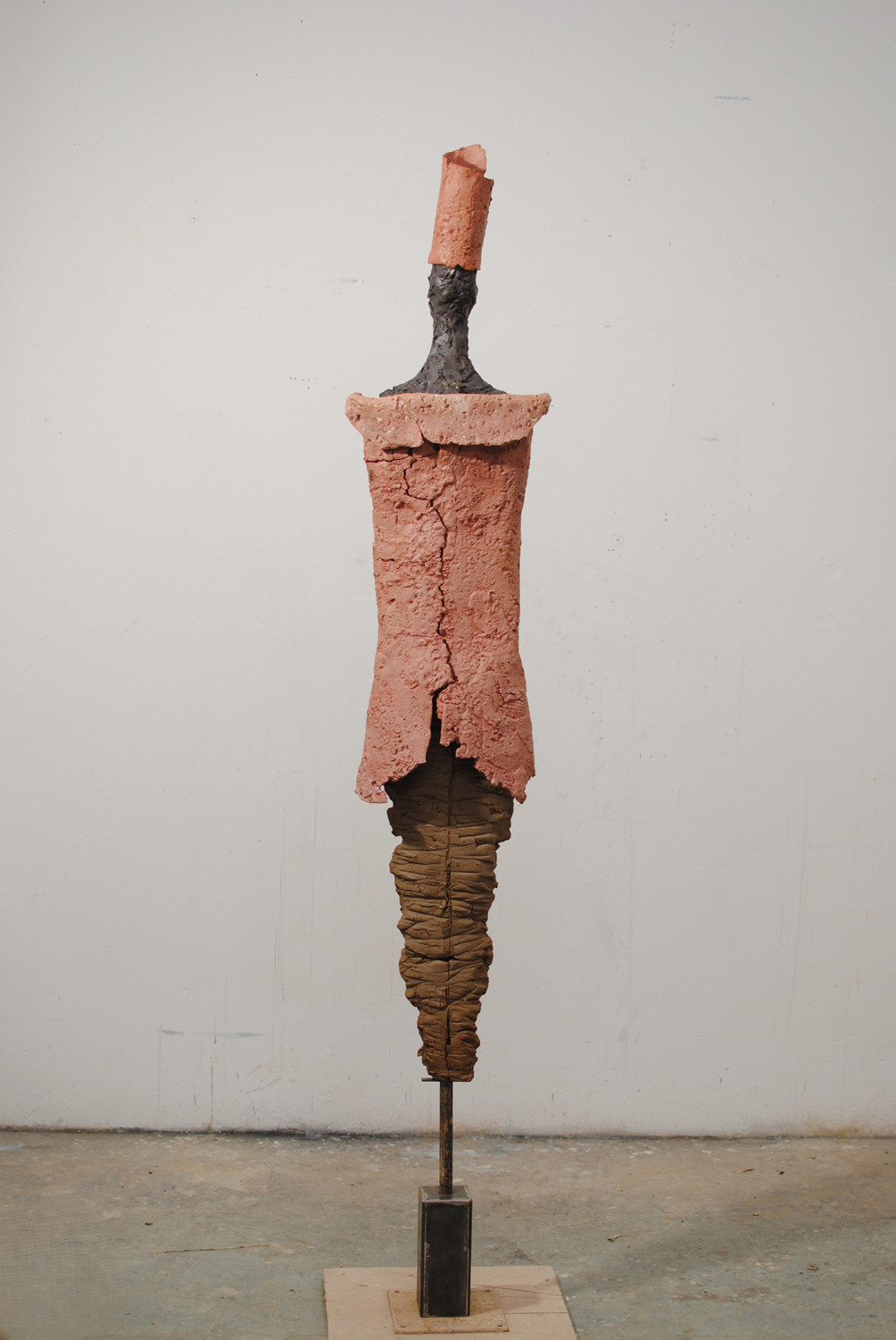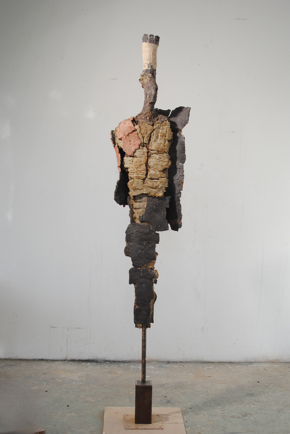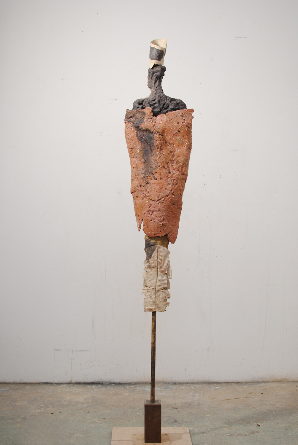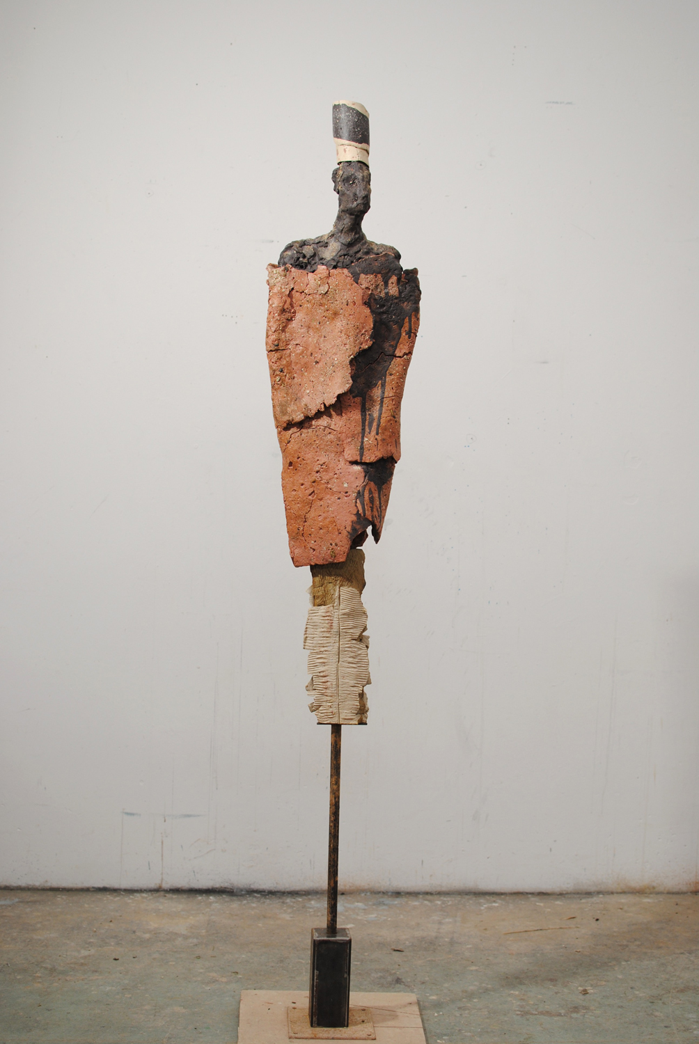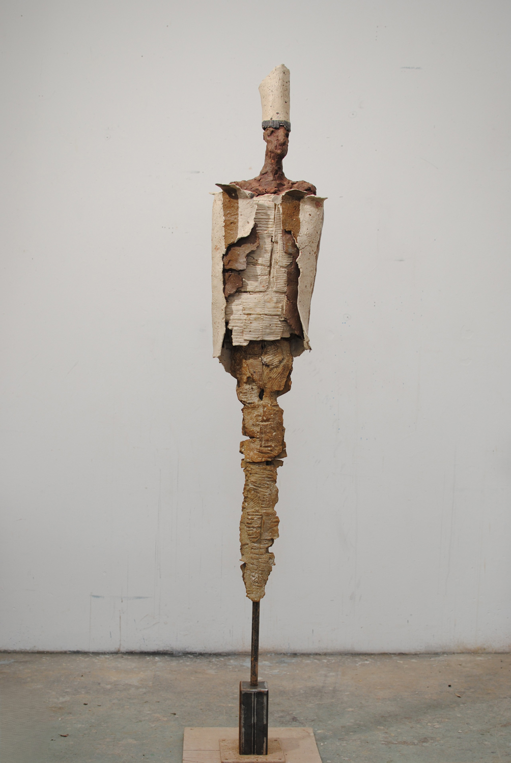 High-fired stoneware on steel armature. Frost-proof and suitable for outdoors.