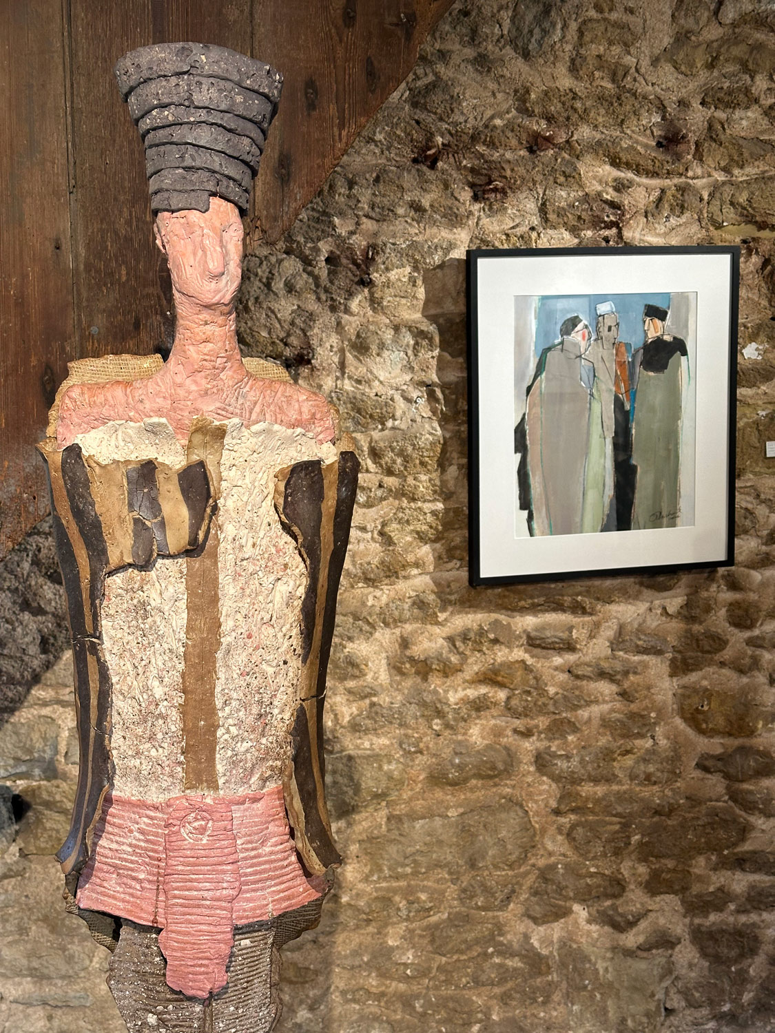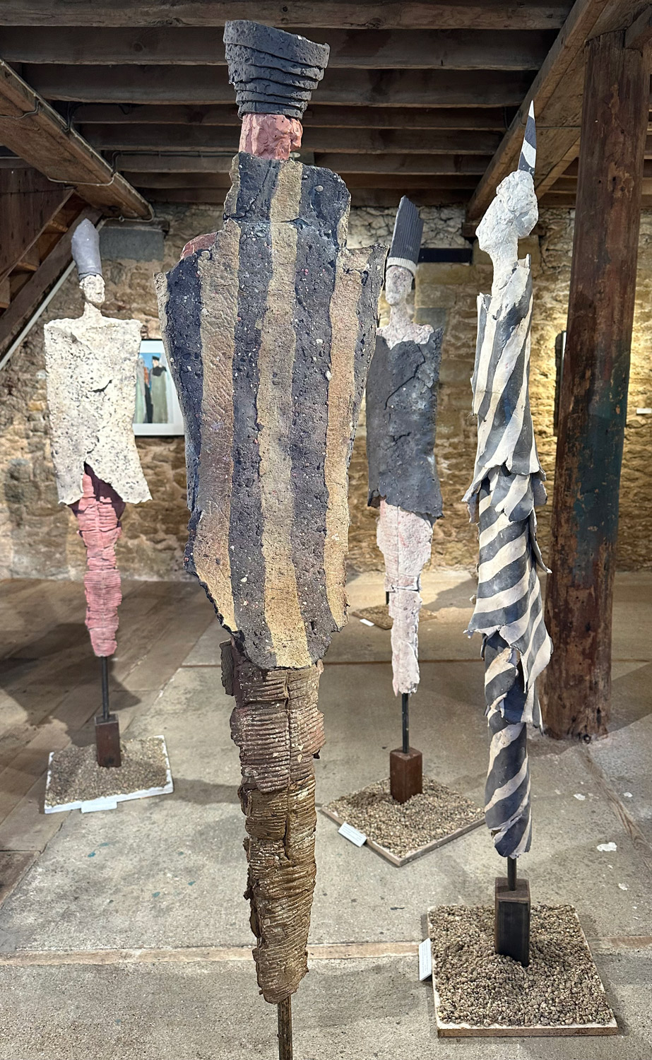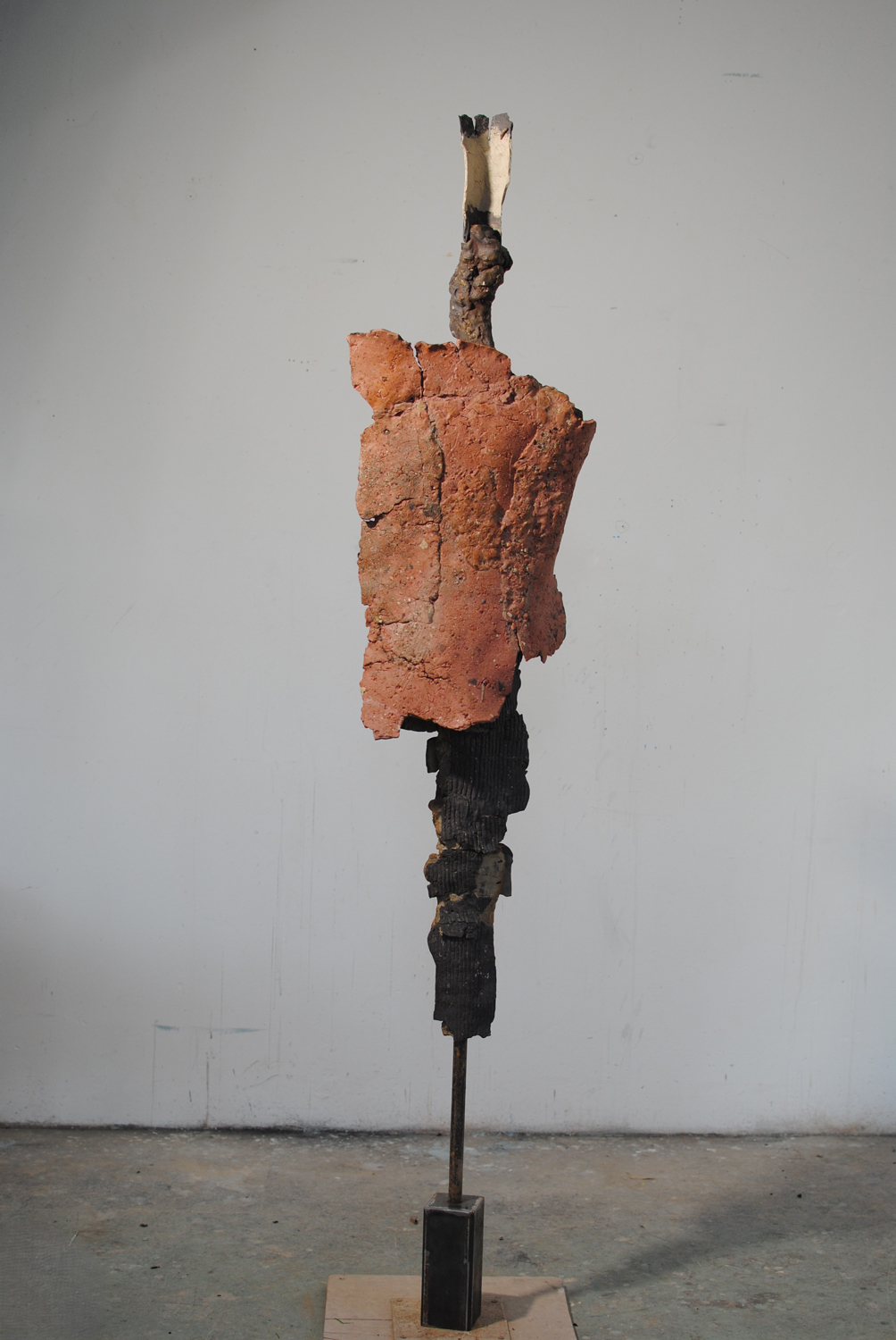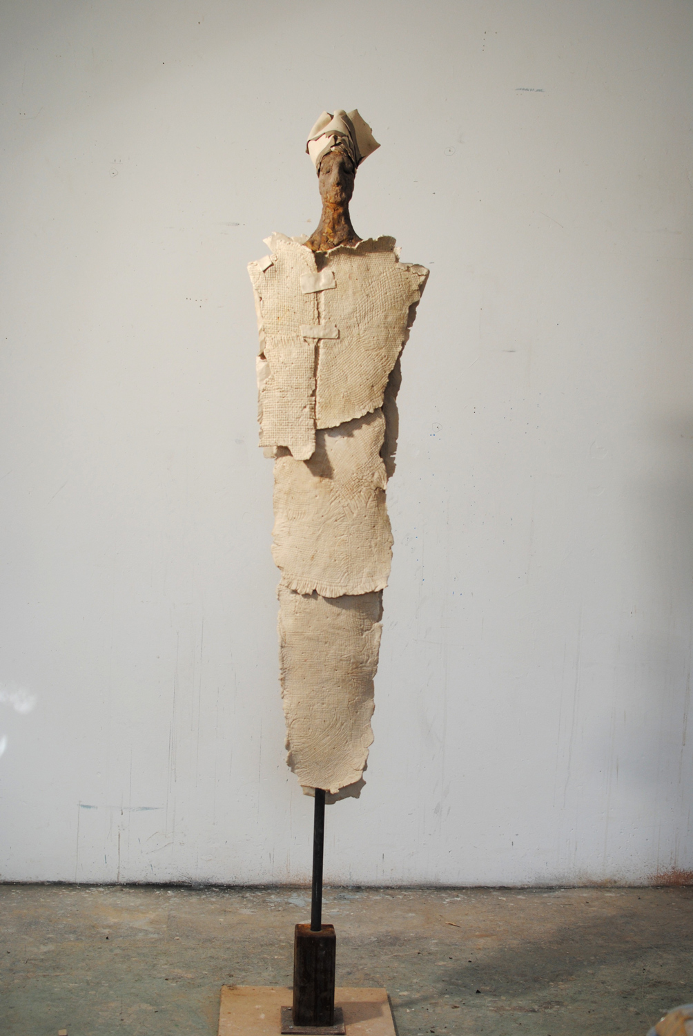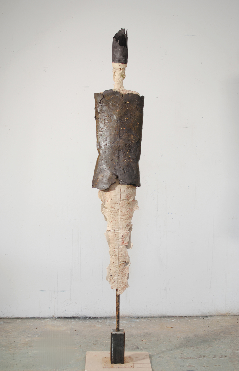High-fired stoneware on steel armature. Frost-proof and suitable for outdoors.