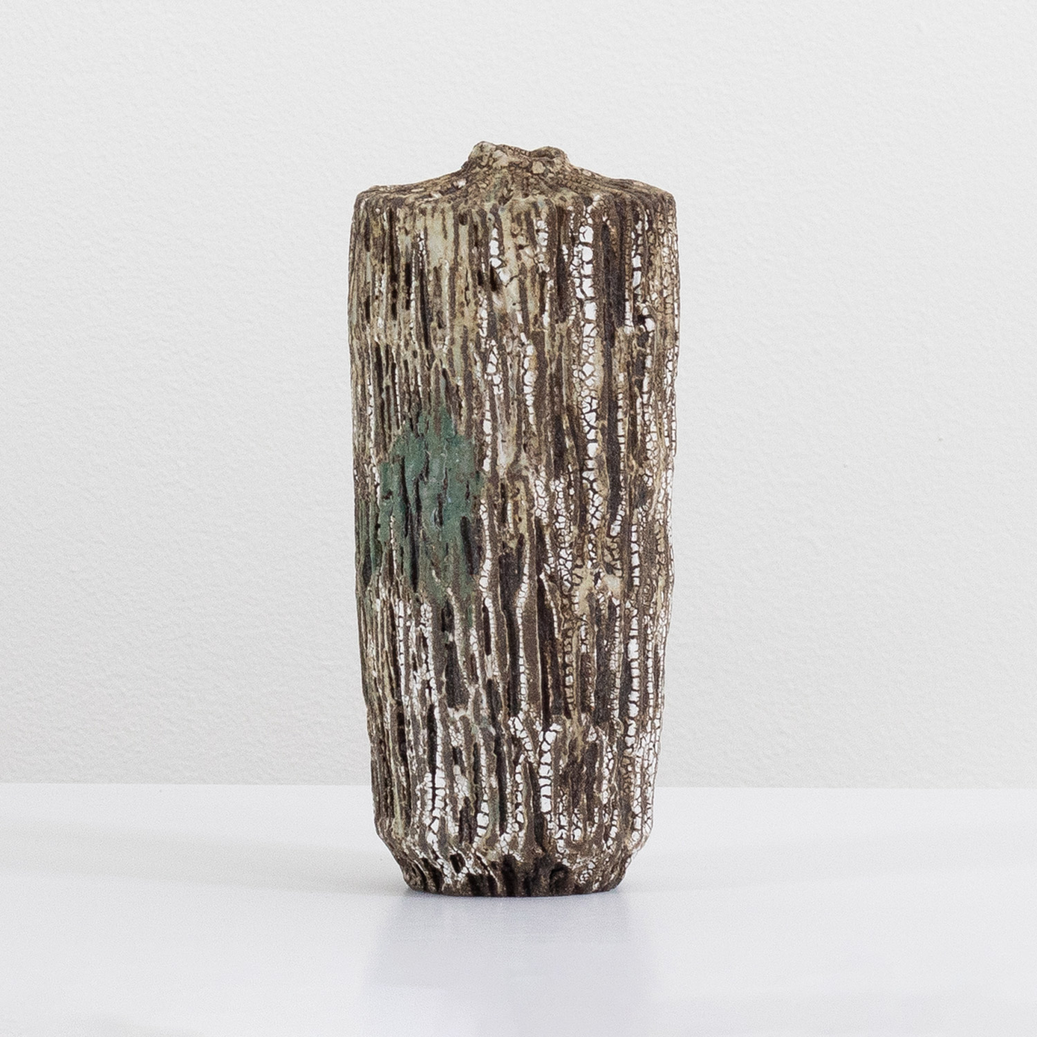 Wheel thrown and hand carved, black stoneware clay with layered slips & glazes.